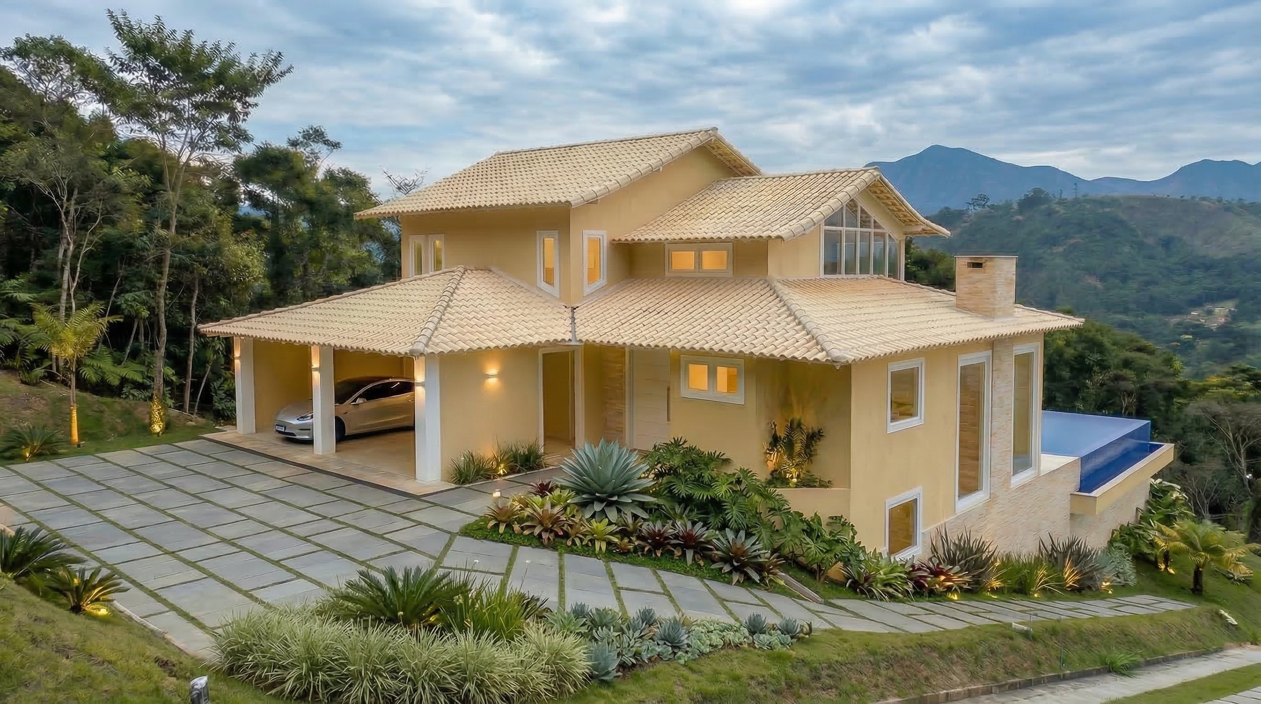 I designed and led the construction of this two-story, four-bedroom colonial-style residence in Petrópolis, Rio de Janeiro. Three bedrooms are located on the second floor, along with a mezzanine-level family room, while the first floor is organized as a social living area integrated with the swimming pool. Large windows throughout the house enhance the stunning views of the Itaipava mountains.